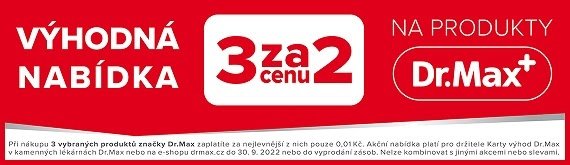 Dr.Max nabízí po celé září produkty své privátní značky v akci 3 za cenu 2. Můžete tak výhodně pořídit například doplňky stravy pro krásné vlasy, dětské vitamínové doplňky stravy, sprej pro nosní hygienu a další.