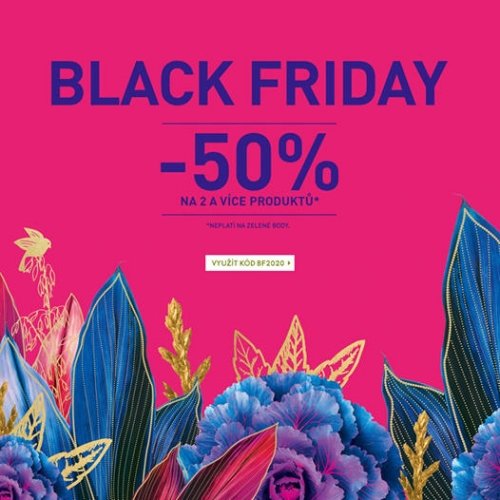 Do 30. 11. 2020 využijte slevy v rámci akce Black Friday - při nákupu 2 a více produktů získáváte na celý košík 50% slevu (nevztahuje se na produkty označené zeleným bodem)! Pokud nakoupíte 3 a více produktů se zeleným bodem, získáte 50% slevu na 3. nejlevnější produkt se zeleným bodem v košíku.