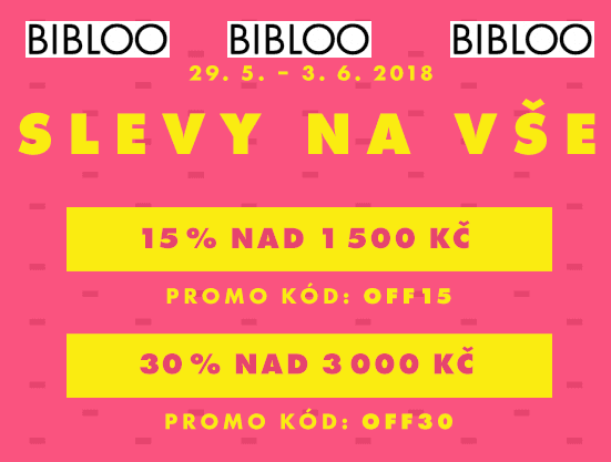 Na eshopu BIBLOO probíhá od 29.5. do 3.6. 2018 sleva na VŠECHNO. Stačí použít slevový kód.