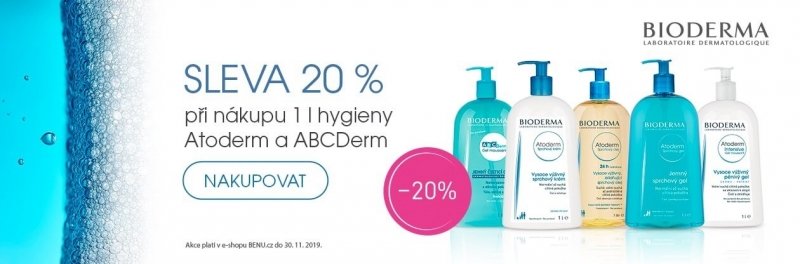 Pokud jste se zamilovali do francouzské pečující značky Bioderma, pak právě Vás potěší Benu lékárna, kde můžete online nakupovat rodinné balení s 20% slevou! Až do konce měsíce (nebo do vyprodání zásob) získejte výhodé 1L balení Atoderm nebo ABCDerm - za skvělou cenu a v pořádné zásobě.