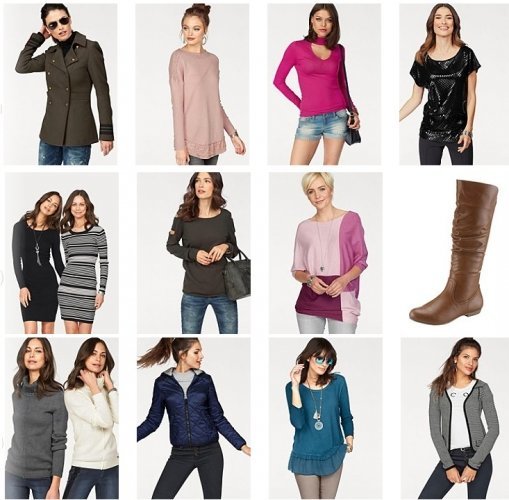 Jakmile se podíváte, co vše je v nabídce pro ženy, otevře se Vám kouzelný svět v celé své kráse. Tady už můžete brouzdat po konkrétních kouscích, které potřebujete. Kategorie jsou přesně podle typu oblečení: šaty, sukně, boty, topy/trička/košile, svetry a mikiny, bundy a saka, kabáty, džíny/kalhoty/legíny, overaly, kabelky/batohy/peněženky, spodní prádlo/pyžama/plavky, punčochy/ponožky, doplňky, hodinky a šperky, móda pro těhotné, móda pro plnoštíhlé.