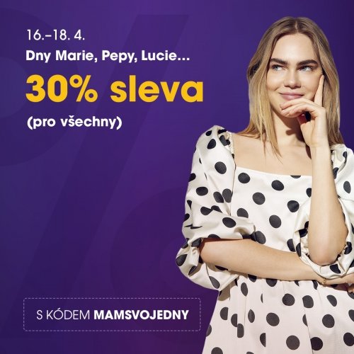ZOOT.cz pro vás připravil 30 % slevu na výrobky označené „dnes extra −30 %“. Zadejte kód MAMSVOJEDNY a užívejte si Dny Marie, Pepy, Lucie...