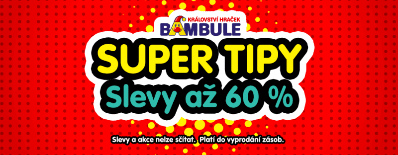 Protože je Bambule.cz opravdové království hraček, přináší nejen super tipy na nejoblíbenější hračky, ale i vysoké slevy na zábavu pro Vaše děti. V těchto dnech můžete využít slevy na oblíbené značky nebo si nechat poradit s výběrem něčeho nového.