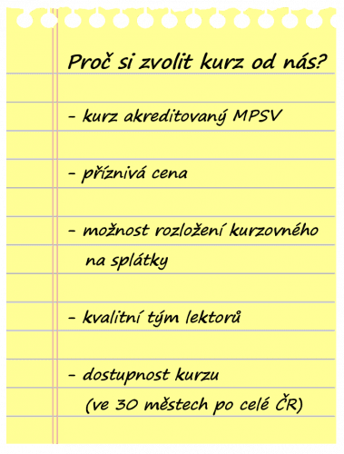 Kvalifikační kurz pro pracovníky v sociálních službách je akreditován Ministerstvem práce a sociálních věcí a svým obsahem plně odpovídá požadavkům na odbornou způsobilost k výkonu povolání pracovníka v sociálních službách podle sociálního zákona č. 108/2006 Sb. Cena kurzovného je již několik let neměnná a činí 6 800 Kč. V některých případech je možné kurzovné zaplatit prostřednictvím úřadů práce. Další možností je zaplacení kurzovného na splátky. Existuje hned několik důvodů, proč si doplnit vzdělání právě ve Vzdělávací agentuře Seduca. Jedním z nich je skutečnost, že semináře i kurzy jsou vedeny odborným týmem lektorů. Velmi příznivá je také dostupnost kurzu, neboť kurz je otevírán ve třiceti městech České republiky. Mezi nimi se pravidelně objevují například České Budějovice, Hradec Králové, Jičín, Havlíčkův Brod, Humpolec, Brno, Praha, Jihlava i Žďár nad Sázavou. Je tedy více než velká šance na to, že kurz bude v blízké době otevřen nedaleko Vašeho bydliště.