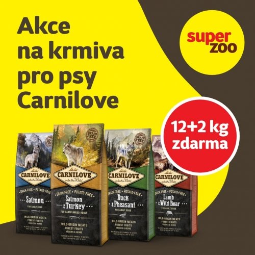 V SUPERZOO právě probíhá speciální akce na superprémiové granule Carnilove! A věřte, že se vyplatí. Při nákupu 12 kg balení jedné ze čtyř nabízených příchutí totiž dostanete další 2 kg této dobroty zdarma!