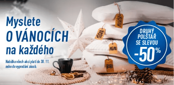 Myslete o vánocích na každého. Vánoční polštáře udělají radost všem. Na ProSpánek.cz nyní získáte druhý polštář se slevou 50 %.