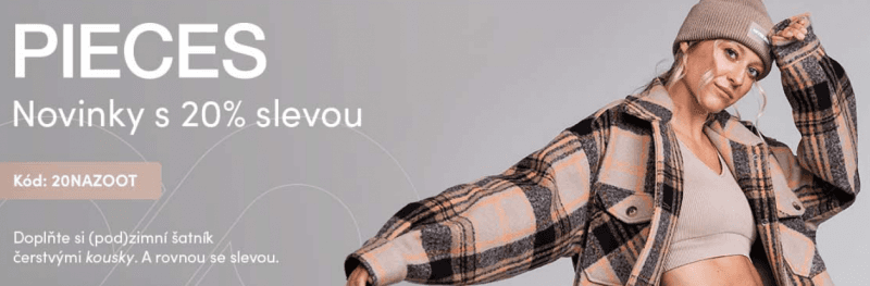 Novinky značky PIECES nyní nakoupíte na ZOOT.cz se slevou 20 %. Pro získání slevy zadejte v objednávce selvový kód 20NAZOOT.