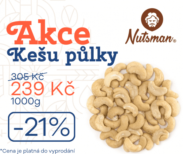 Nutsman.cz nabízí půlené oříšky za akční cenu 239 Kč/kg. Nenechte si tuto nabídku ujít. Platí do vyprodání zásob nebo do 12. září 2022.