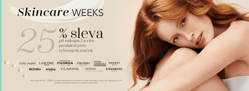 V rámci akce Skincare weeks nabízí Douglas.cz slevu 25 % při nákupu dvou a více produktů péče o pleť vybraných značek. Akce platí do 30. ledna 2022.