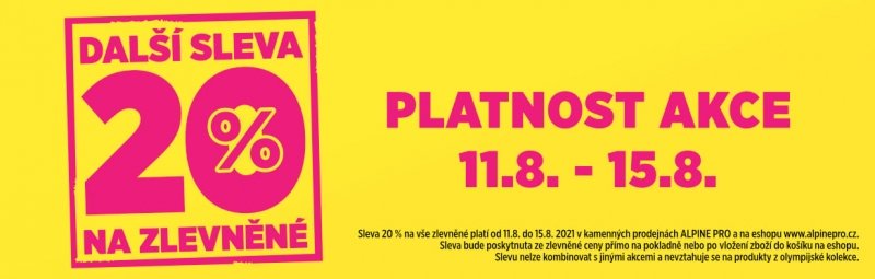 Vybírejte sportovní oblečení, obuv a doplňky s extra slevou 20% na vše zlevněné v eshopu Alpinepro.cz. Platí od 11. do 15. srpna 2021.