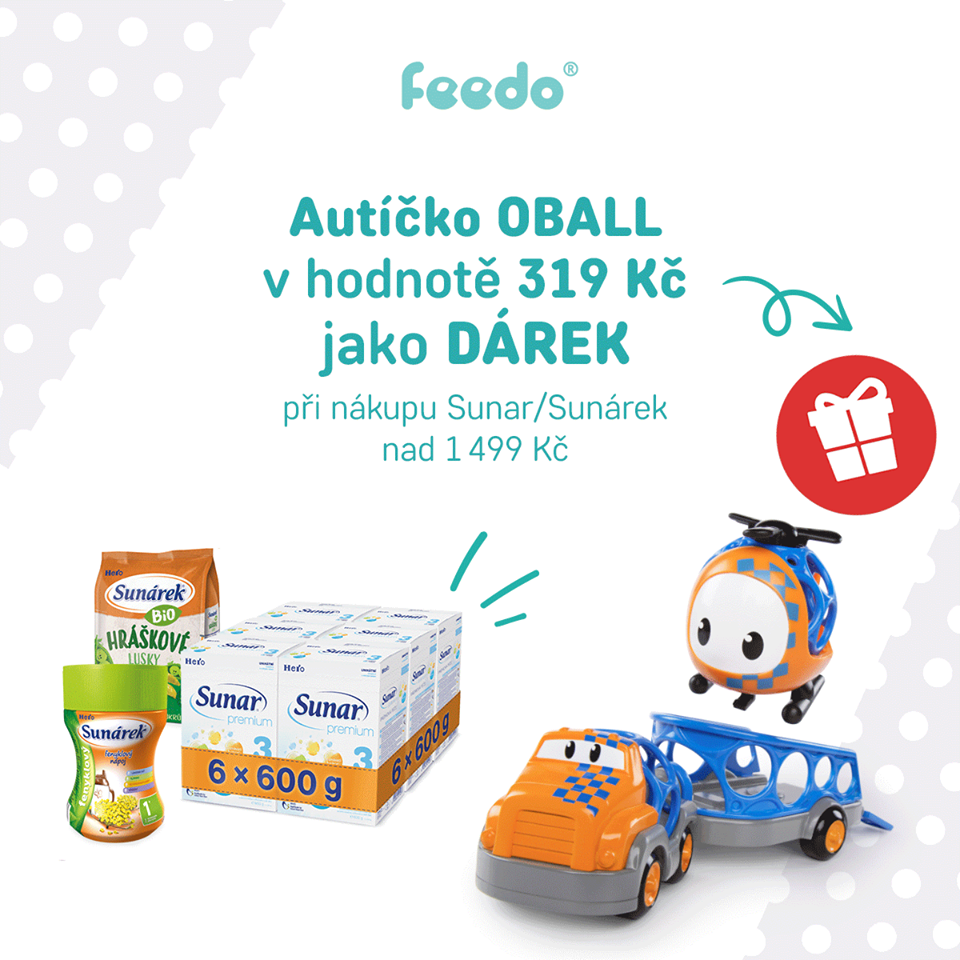 - Při nákupu Sunar/Sunárku v hodnotě 1499,- Kč, získáváte dárek - autíčko OBALL v hodnotě 319 Kč!Tato akce platí do 28. 6. 2020.