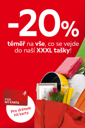 Držitelé klubové karty HIT by si pak rozhodně neměli nechat ujít akci se slevou 20% na vše, co se vejde do XXXL tašky! Tato akce potrvá také ve dnech 30. 03. – 01. 04. 2020 a 06. 04. – 08. 04. 2020.