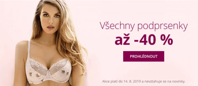 Značka Astratex Vás bude v těchto dnech hýčkat obrovskými slevami - sleva až 40% na podprsenky a až 50% na plavky! Velká akce platí pouze do 14. 8. 2019, takže neváhejte a vybírejte. V nabídce najdete široký výběr standardních i nadměrných velikostí, expresní dodání do druhého dne a rychlý servis v případě výměny zboží.