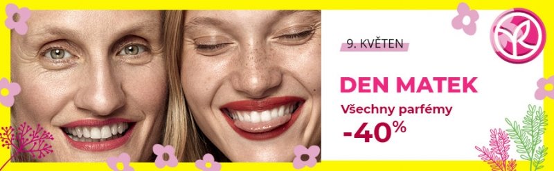 Yves Rocher s Vámi oslavuje Den matek a přináší slevu 40% na všechny vůně! Až do 9.5.2021 vybírejte nádherné vůně za akční ceny a v nákupním košíku zadejte slevový kód DENMATEK. Radost novou vůní můžete udělat nejen sami sobě, ale také někomu blízkému jako krásným dárkem.