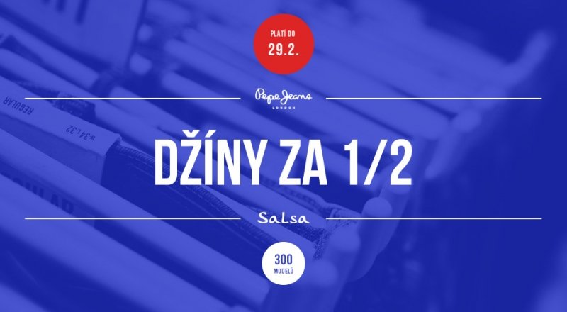Dopřejte si pohodlí a styl za polovinu díky Jeans Store! Až do konce února 2020 můžete nakupovat džíny značky Salsa a Pepe Jeans o polovinu levněji než obvykle. Využijte této nabídky a najděte si skvěle padnoucí džíny pro každou postavu. Protože se skvěle hodí na nejrůznější příležitosti, byla by škoda šoupat pouze jeden - Váš oblíbený kousek.