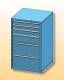 Stacionární kontejner do výšky 1215 mm s devíti zásuvkami. Svařovaný korpus skříně obsahuje zásuvky o výškách 3x75. 2x100. 2x150 a 2x200 mm s centrální blokací a cylindrickým zámkem. Rozměr 731x753x1215 mm