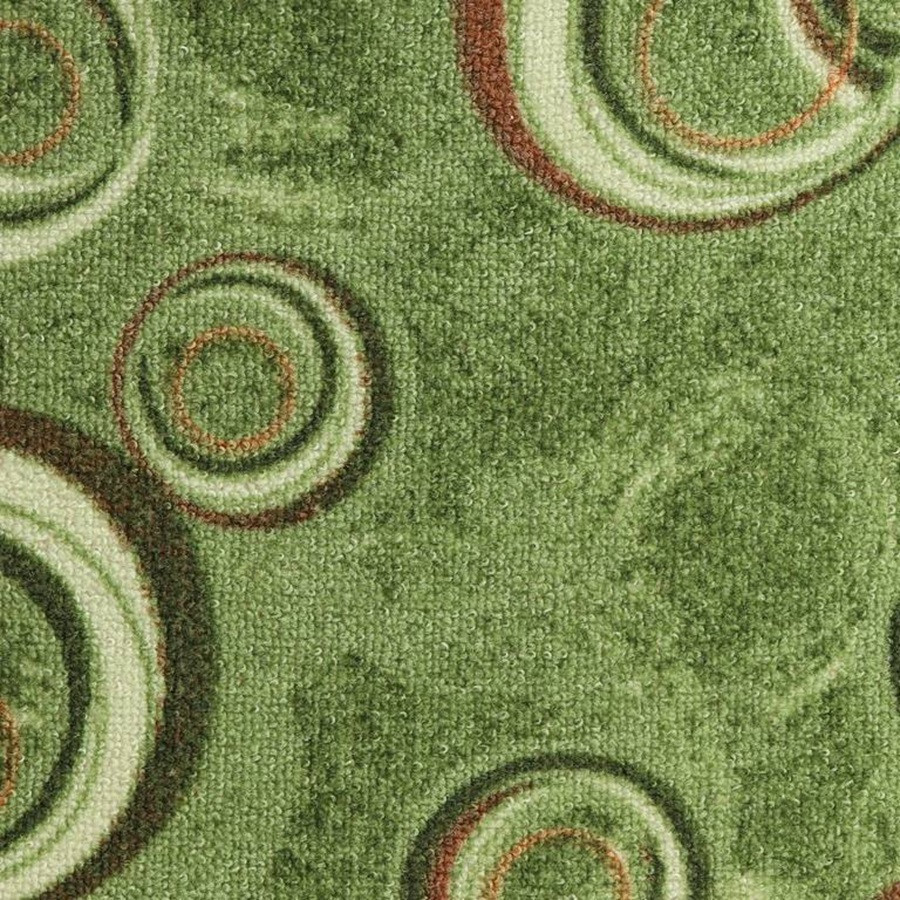 Originální zářivě zelená barva tohoto metrážového koberce Drops vnese do každé místnosti klid a pohodu. Koberec je vyrobený z polyamidu a cenově je velice dostupný. Hodí se především do středně namáhaných bytových prostor. Zdobený je barevným potiskem v podobě kruhů v zelených a hnědých odstínech.