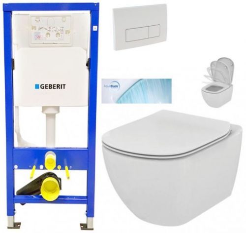 AKCE/SET/GEBERIT Duofix Sada pro závěsné WC 458.103.00.1 + tlačítko DELTA51 BÍLÉ + WC TESI se sedátkem SoftClose, AquaBlade 458.103.00.1 51BI TE1