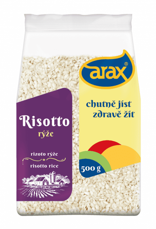 Rýže risotto – ARBORIO je druh krátkozrnné japonské rýže seté (Oryza sativa), která se pěstuje v Itálii. Pojmenována byla podle města Arborio v údolí řeky Pád, kde se hojně pěstuje. Tento druh rýže je vhodný a přednostně určený pro přípravu tradičního italského rizota, protože uvařená zrna Arborio se dobře pojí s ostatními zrny a má vysokou schopnost vstřebávat chutě. Navíc po uvaření zrna zůstávají pevná na skus, ale přesto získají i jemnou a mazlavou strukturu. Obsahuje amylopektin (druh škrobu). Balení: 500 g O firmě V roce 1995 byla založena společnost ELLADA Praha s.r.o. jako předchůdkyně stávající společnosti. Tehdy se rodinná firma v malém zabývala obchodem s drobným zbožím. V roce 2008 prošla firma komplexní restrukturalizací a posílením kapitálové základny. Tyto kroky nám umožnily rychlý vstup na trh, vyznačující se jinak těžkou prostupností a velkou měrou konzervativnosti. Od roku 2008 se firemní aktivity soustředí zejména na balení a distribuci suchých potravin. Dynamicky se rozvíjíme do nových trhů, rozšiřujeme produkci, počty zaměstnanců a zkvalitňujeme spolupráci. Průběžnými investicemi do lidských zdrojů a automatizace výroby dosahujeme velmi vysoké míry efektivity. Nyní působí pod novým názvem společnosti - Foodish s.r.o., která zpracovává a balí potraviny pod registrovanou značkou ARAX.