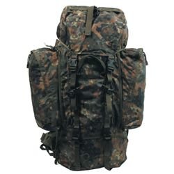 Velmi velký batoh o objemu cca 110 litrů od německé firmy MFH. Vlastnosti: • nastavitelné polstrované ramenní i bederní popruhy • dodatečné výškové nastavení ramenních popruhů • nastavitelný hrudní popruh • polstrovaná záda s odnímatelným hliníkovým výztužným rámem • spona na ramenním popruhu pro hydratační systém • madlo na přenášení • odnímatelné víko s poutky a kapsou na zip na vnější i vnitřní straně • hlavní přihrádka s dvojitým