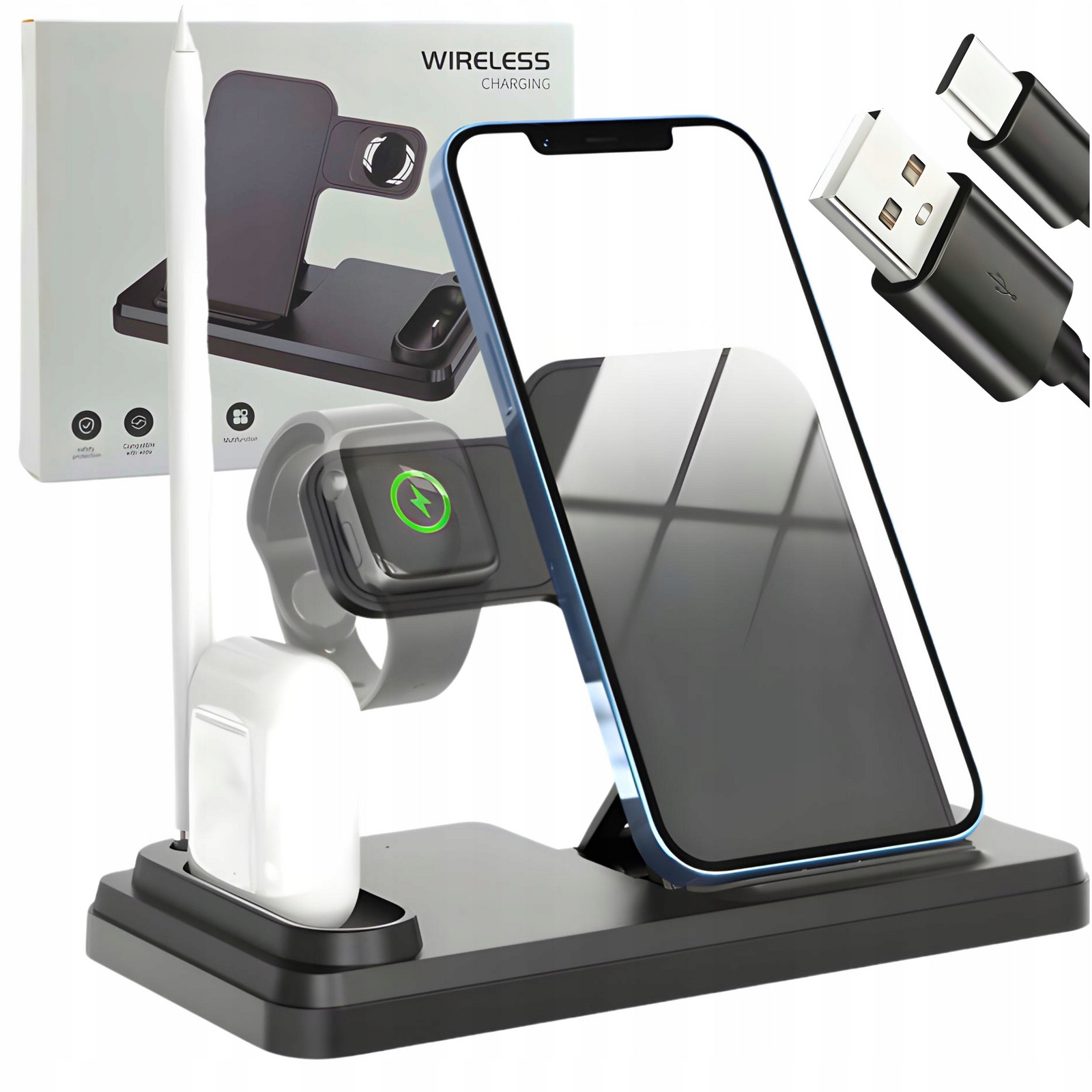 ✅ Hledáte pohodlnou a multifunkční nabíječku? Tento model umožňuje nabíjet až čtyři zařízení současně – telefon, chytré hodinky, sluchátka AirPods a stylus!