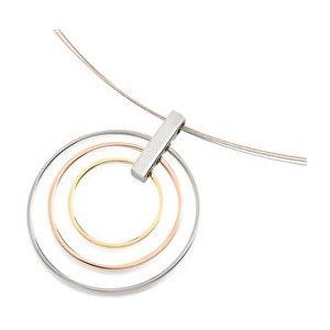 Nádherný šperk, který nebudete chtít sundat. Jemné, elegantní a mimořádně okouzlující přívěsek vás zaujme od prvních okamžiků. Jeho design je tvořený třemi, různě velkými kruhy - jeden v titanovém provedení, další v barvě růžového zlata a poslední se žlutým pozlacením. Díky svému vzhledu je přímo ideální pro každodenní nošení, své uplatnění si ale najde ve výjimečných událostech. Protože je přívěsek vyrobený z titanu, je krásně lehký, pevný a odolný. Je také antialergický, což ocení zejména osoby se