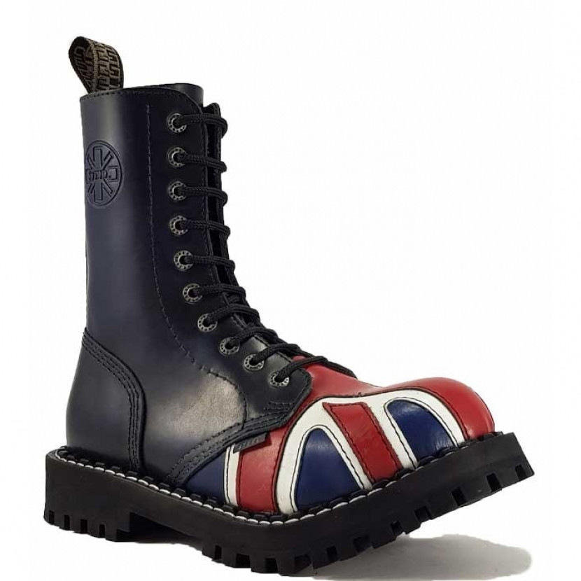 Boty Steel 10-dírkové Britská vlajka - modré stírané, 43