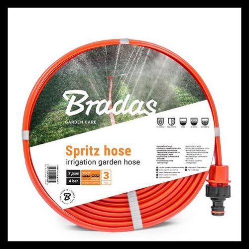 Vysoce kvalitní tříkanálová plochá hadice s mikro perforací BRADAS SPRITZ o průměru 1/2" je vyrobená z jakostního PVC materiálu. Zavlažování probíhá formou malých fontánek, nebo při obráceném použití přímo do zeminy. Šetří váš čas i spotřebu vody. Díky svému kvalitnímu zpracování je vhodná zejména pro zavlažování zahrad, trávníků nebo květinových záhonů atd. Je vhodná pro použití v zemědělství.