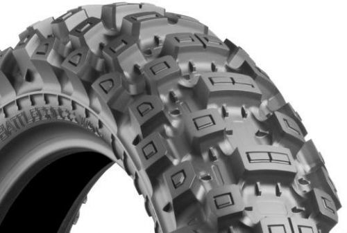 Motopneu Bridgestone X40F v rozměru 90/100R21 M57. Bridgestone posiluje své postavení rovněž na trhu motokrosových pneumatik (MX) uvedením pneumatiky Battlecross X30 pro středně tvrdý terén a Battlecross X40 pro tvrdý terén. Obě nové pneumatiky poprvé nesou produktové označení Battlecross a využívají pokrokovou technologii konstrukce motokrosových dezénů a bloků, která byla vyvinuta a prověřena v motokrosových závodech nejvyšší úrovně. Nové dezény předních pneumatik Battlecross X30 a X40 jsou vybaveny asymetricky uspořádanými bloky na levé a pravé straně, které poskytují vysokou stabilitu během brzdění a akcelerace a suverénní přilnavost při průjezdu zatáčkou s jakýmkoli úhlem náklonu. Testy(4) ukázaly, že obě nové přední pneumatiky Battlecross poskytují výrazně vyšší úroveň přilnavosti než současné produkty Bridgestone M403 a M603, které nahradí.
