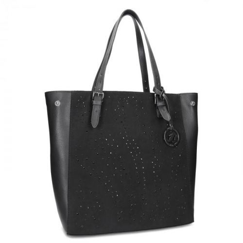 Dámská kabelka v Tote střihu je naprosto ideálním kouskem do práce i na volný čas – je reprezentativní a zároveň pojme spoustu věcí od dokumentů přes kosmetickou taštičku až po mobil a klíče. Černý svršek zdobí originální kamínky a po stranách ji můžete sepnout a mít tak zase o něco jiný model.; material: textil