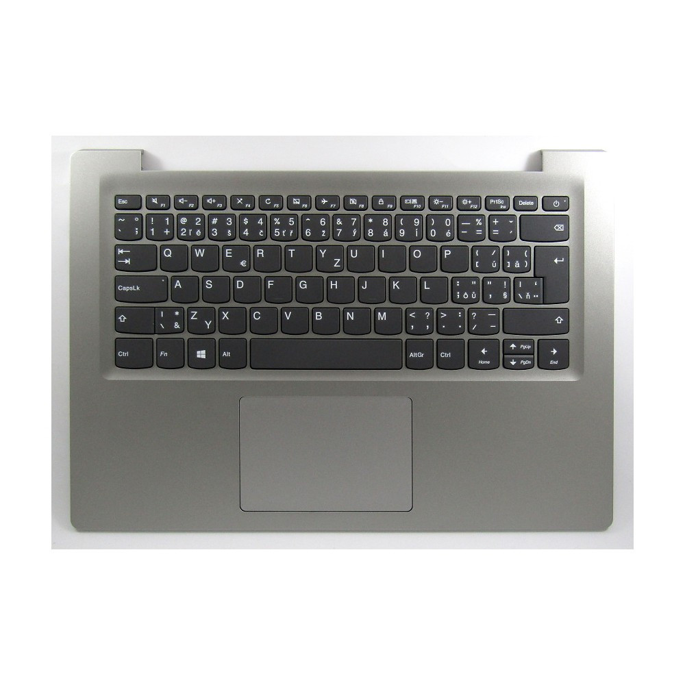 česko - slovenská šedá klávesnice notebooku Lenovo IdeaPad 120s-14, 120S-14IAP, S130-14 včetně stříbrného palmrest krytu s touchpadem modrý palmrest ZDE