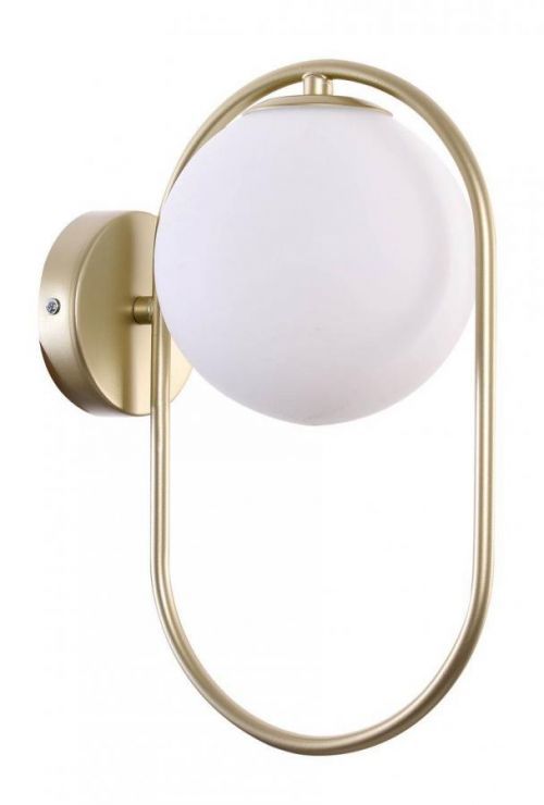 Nástěnné LED svítidlo s paticí 1x G9 o výkonu max. 28W. Rozměr tohoto svítidla je 320x220x150mm. Jedná se o elegantní nástěnné svítidlo určené do moderního, skandinávského nebo minimalistického interiéru. Vytvoří jedinečnou atmosféru v obývacím pokoji nebo ložnici, ale bude se skvěle vyjímat i v předsíni nebo pracovně. Hlavní konstrukce je z vyrobena z kovu s mosazným efektem a stínidlo z bílého mléčného skla.