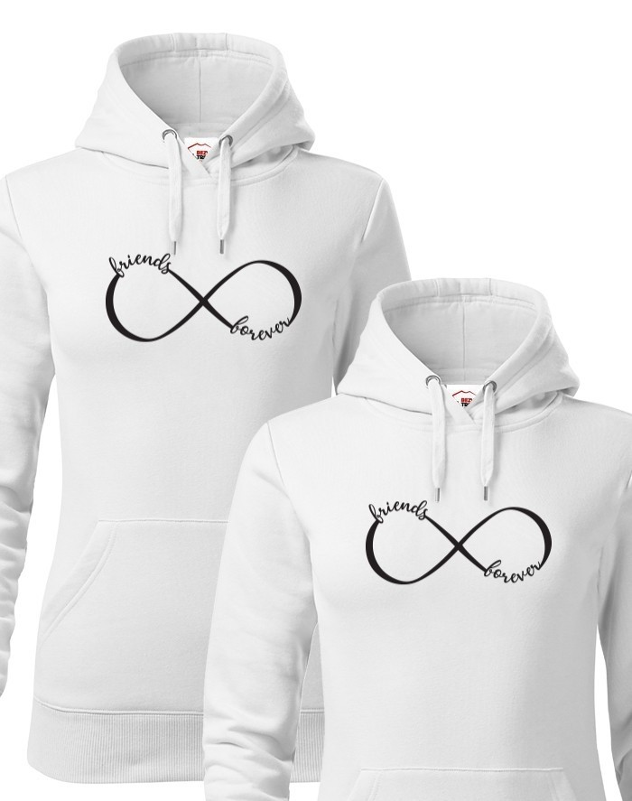 Co říkáš na tyto mikiny s potiskem pro nejlepší kamarádky? Potisk Friends Forever prostě musíš mít. Mikiny nabízíme standardně v několika barevných kombinacích. Dejte všem najevo, kdo je vaše nej kamarádka s těmito stylovými BFF mikinami.
