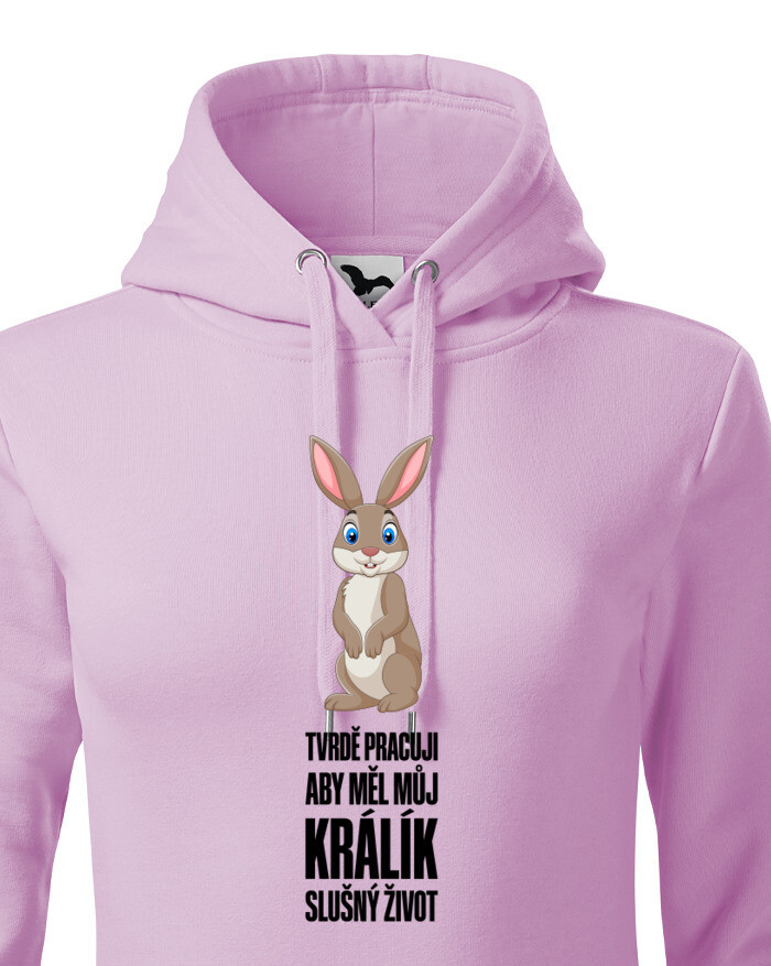 Dámská mikina „Tvrdě pracuji, aby měl můj králík slušný život“