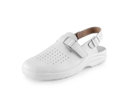Sandál, kožený s plnou špicí, perforovaný s přezkou na suchý zip a páskem