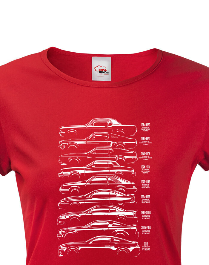Dámské tričko s potiskem Ford Mustang History Silhouette - tričko pro milovníky aut