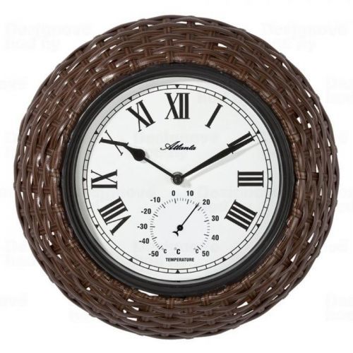 Netradiční dekorační hodiny s pleteným rámkem v imitaci ratanu.