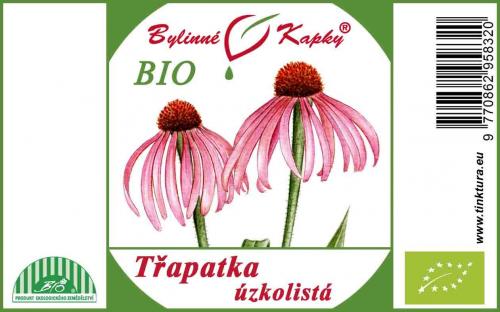 Přírodní bylinný extrakt z živé kvetoucí natě léčivé rostliny třapatky úzkolisté (Echinacea angustifolia) - echinaceové kapky pro správnou funkci imunitního systému. Kód kontrolní organizace: CZ-BIO-002. Tinctura Echinaceae herba. Tincture Echinacea herb. T1/K1