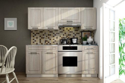 Kuchyňská linka je vyrobena v klasickém designu a skříňky si můžete sestavit buď tak, jak vidíte na úvodní fotografii, nebo si je můžete sestavit podle svých potřeb.