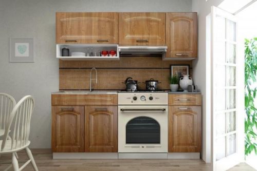 Tato kuchyňská linka je vyrobena v klasickém designu a skříňky si můžete sestavit buď tak, jak vidíte na úvodní fotografii, nebo si je můžete sestavit podle svých potřeb.