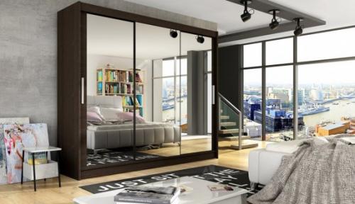 Skříň Astana s posuvnými dveřmi, je vyrobena z kvalitního lamina o síle 16 mm a hrany jsou ukončeny ABS lištou. Vodící lišty jsou vyrobeny z odolného hliníku a splňují požadavky pro každodenní užívání. Na dveřích skříně jsou nalepená zrcadla, která místnost opticky zvětší a prosvětlí. Skříň nabízíme ve čtyřech odstínech. Díky svým rozměrům a uspořádání poskytuje dostatek úložného prostoru. Skříň je dodávána v demontu a součástí je montážní plánek včetně všech potřebných spojovacích materiálů. Vyobrazené dekorace nejsou v ceně.