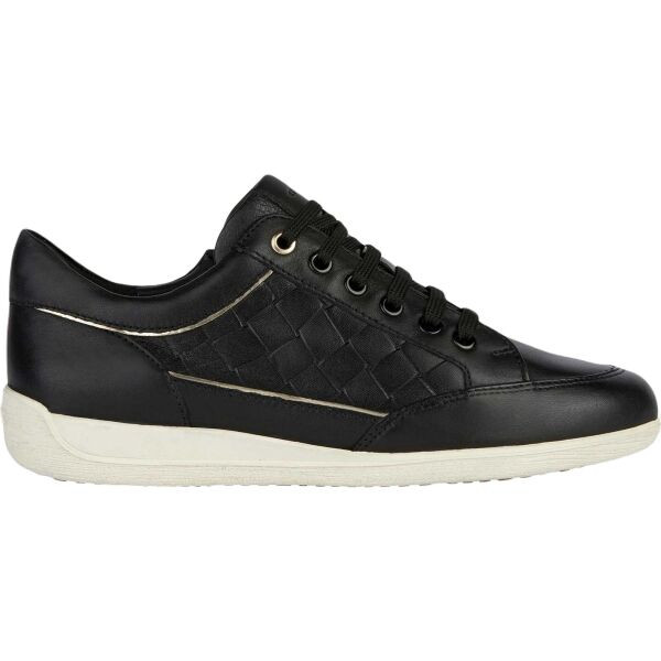 Dámská prodyšná pohodlná teniska Geox D MYRIA nízkého střihu s atraktivní neokázalou estetikou je usazená na tenké kontrastní podrážce. Design dotváří efekt kůže se zlatými detaily, co teniskám dodá přitažlivě ženský šmrnc.