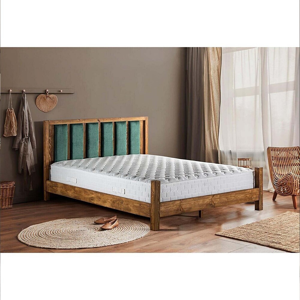 Zažijte dokonalou kombinaci elegance a pohodlí s naší manželskou postelí.Proměňte svou ložnici ve svatyni stylu a odpočinku s naším nádherným dvojlůžkem. Tento postelový rošt, vyrobený s maximální precizností a důrazem na detail, je navržen tak, aby pozvedl váš zážitek ze spánku na novou úroveň. Nepřekonatelná kvalita a odolnostNaše postel je vyrobena ze 100% borovicového dřeva a vydrží dlouho. Robustní konstrukce zajišťuje dlouhou životnost, takže si budete moci užívat klidný spánek po dlouhá léta. Dejte sbohem vrzajícím postelím a přivítejte pevnou a spolehlivou plochu na spaní. Esteticky příjemný designDíky moderně-novinářskému pojetí a vlivu amerických tradic náš postelový rošt bez námahy spojuje nadčasovou eleganci s moderním vkusem. Úchvatná kombinace mořské zeleně a oříškové barvy dodá každému interiéru ložnice nádech sofistikovanosti a stane se ústředním bodem, který zanechá vaše hosty v úžasu. Dopřejte si bezkonkurenční pohodlíVelkorysé rozměry našeho lůžka poskytují dostatek prostoru, abyste se mohli natáhnout a odpočívat. Ať už si užíváte líné nedělní ráno nebo se choulíte do klubíčka s dobrou knihou, tento postelový rošt nabízí dokonalou rovnováhu mezi pohodlím a oporou. Technické údaje:Šířka: 185 cmVýška: 100 cmHloubka: 212 cmVýška nohou: 50 cmMatrace není součástí dodávkyInvestujte do dokonalého zážitku ze spánku s na?