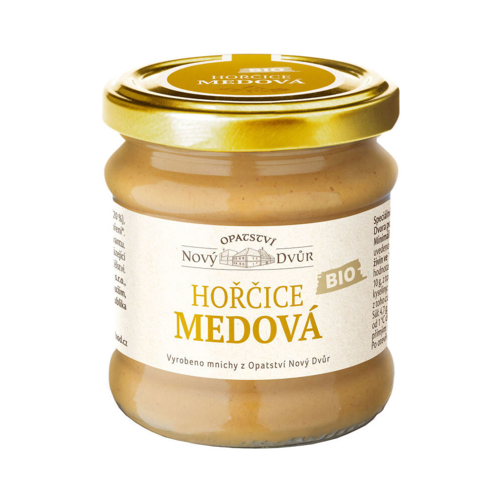 Tato hořčice má jemnou nasládlou chuť a nepálí, díky tomu se skvěle hodí do pokrmů, které chceme pouze jemně dochutit - do bramborového salátu či salátových zálivek. Výborně doplňuje chuť masa, uzenin či sýra. Lze ji použít i k přípravě pomazánek, omáček a dresingů a marinování masa či zeleniny. Je vyráběna řemeslně a v malém objemu podle originální trapistické receptury mnichy z opatství Nový Dvůr. Tradičně, každý klášter řádu se musí uživit prací svých mnichů. V klášteře Nový Dvůr se vyrábí hořčice, chovají ovce a pracuje v lese. Hořčice z Nového dvora je velmi kvalitní produkt, vyrábí se z vybraného hořčičného semínka, které je nejprve namočeno do směsi octa a vody z lesů obklopujících klášter. Poté je rozdrceno na mlýnském kameni a dochuceno ostatními přísadami. Ochucená hořčice je ručně plněna do sklenic, kde během několika týdnů dozrávání získává své nezaměnitelné aroma, které ji tak výrazně odlišuje od konkurenčních výrobků.