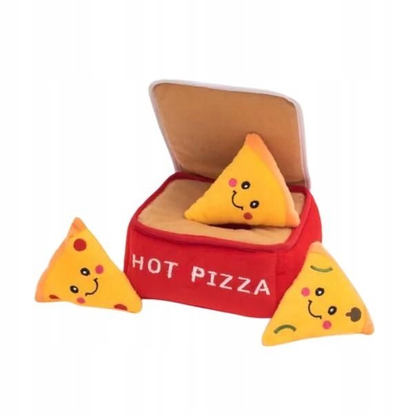 Plyšová hračka pro psa NomNomz - krabička s kousky pizzy - značky ZippyPaws Dívá se na vás váš pes prosebným pohledem, když něco jíte? „Žebře“ od vás chipsy, tyčinky a všechno, co je nezdravé? Takže plyšová hračka od ZippyPaws, inspirovaná skutečným jídlem, se stane jeho oblíbenou! Dopřejte svému psovi dokonalou párty s pizzou v krabičce na pizzu Zippy Burrow™! Stačí vložit kousky pizzy Miniz do krabice, pohodlně se usadit a sledovat, jak je vaše Pes s vzrušením vtlačí nos do krabice, aby vytáhl a vytáhl z ní plyšové trojúhelníky pizzy. Jakmile váš pejsek vyjme všechny kousky pizzy, bude vás prosit, Abyste je vložili zpět – tato hračka je geniálním nápadem pro hodiny zábavy! Navíc má každý trojúhelník pizzy všitou píšťalku, díky které bude vaše zábava ještě atraktivnější! Hračky Zippy Burrow™ jsou ideální interaktivní hračky! Díky tomuto krabici na pizzu bude váš pes zaneprázdněný a angažovaný. Díky hře na schovávanou jsou hračky Zippy Burrow™ pomáhají předcházet nudě a podporují duševní stimulaci! Tato interaktivní hračka obsahuje 1 norku Pizza Box a 3 malé pískací kousky pizzy Miniz (Sýr, feferonky a Vege). Krabička na pizzu má rozměry 17 cm x 15 cm x 10 cm a svým tvarem a rozměry umožní hru každému psovi – od ště