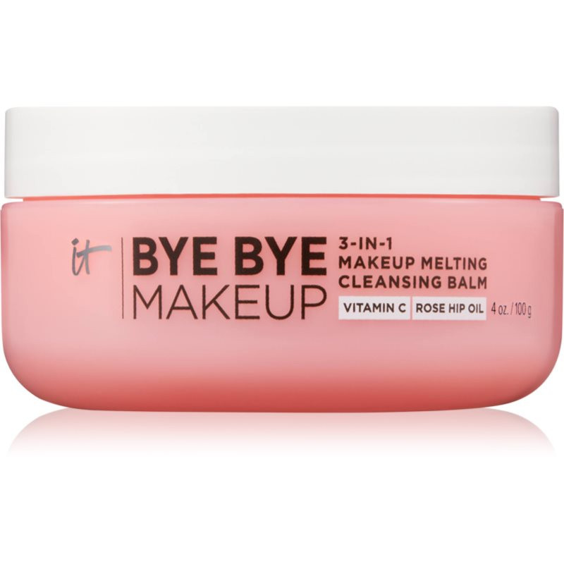 IT Cosmetics Bye Bye Makeup, 100 g, Odličovače pleti pro ženy, Odličovací přípravek IT Cosmetics Bye Bye perfektně odstraňuje z tváře make-up i veškeré nečistoty a zanechá pleť hebkou a čistou. Vlastnosti: účinně zbavuje pleť make-upu dokonale rozpouští i voděodolný make-up zanechává pleť zcela čistou nezanechává mastný pocit Složení: veganský produkt bez alkoholu Jak používat: Přípravek aplikujte na suchý obličej a konečky prstů jemně masírujte pleť, zejména znečištěná místa. Přidejte trochu vody a pokračujte v masáži obličeje, aby se rozpustil make-up a nečistoty. Nepřestávejte, dokud se olej nezbarví do bíla. Poté opláchněte. Používejte pravidelně každý den, a to i v případě, že se vždy nelíčíte. Odličovač vám pomůže odstranit například i zbytky sluneční kosmetiky a jiných produktů.