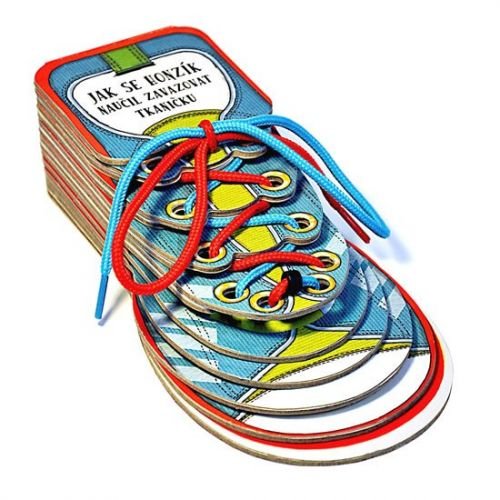 relo ve tvaru dětské botičky naučí děti přístupnou a hravou formou zavazovat tkaničky. Titul obsahuje jednoduchý motivační příběh a pod sešněrovanými stránkami v jednotlivých krocích i ilustrovaný návod jak si tkaničku zavázat. \r
