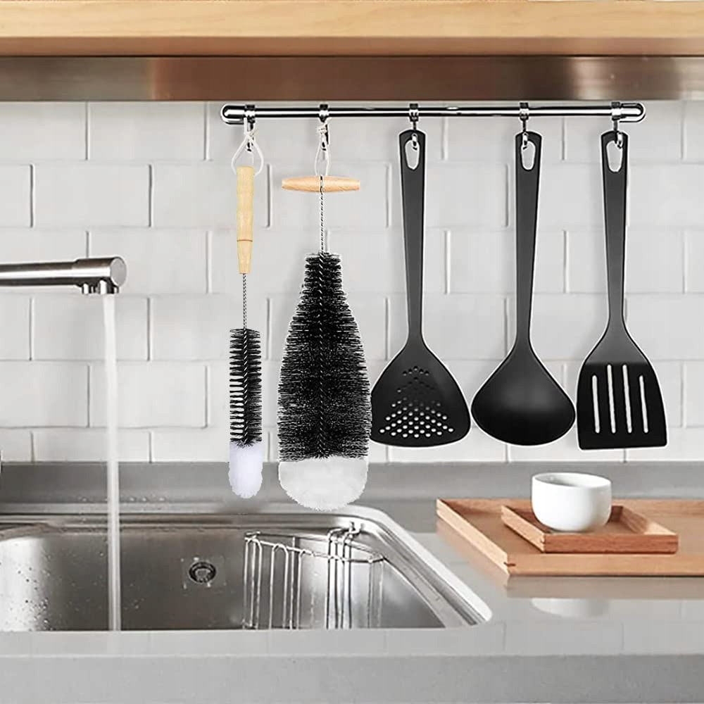 【Kartáč na láhve sody】 Kartáče na skleněné lahve jsou speciálně navrženy tak, aby odpovídaly tvaru skleněných lahví sody. Jedinečně navržené tělo kartáče odpovídá tvaru skleněné láhve a lze jej čistit v každém rohu, díky čemuž je proces čištění efektivnější a pohodlnější.【Rychlé čištění】 Kartáč na láhve je vyroben z vysoce kvalitní bavlny, nylonu a nerezové oceli. Koncovky z tenké nylonové a bavlněné nitě činí čištění jemnějším a nepoškrábou povrch láhve, díky čemuž si láhev po čištění zachovává svůj lesklý lesk. Ergonomická dřevěná rukojeť umožňuje pohodlné a efektivní čištění.【Trvanlivý】 Vzhledem k tomu, že rukojeť čisticího kartáče je vyrobena z z nerezové oceli 304, čistič lahví při kontaktu s vodou nerezaví, snadno se nedeformuje a je velmi odolný. Čistič lahví s bavlněnou špičkou čistí skleněné nádoby velmi jemně a zabraňuje tak nevzhledným škrábancům na dně láhve během čištění.【Lze zavěsit】 U kartáčů na lahve s menším průměrem jemně zatlačte kartáč do láhve. Po každém použití stačí kartáč opláchnout vodou a nechat přirozeně uschnout. Použijte smyčku na spodní straně rukojeti k zavěšení čisticího kartáče a uložte jej na větraném a suchém místě. Každý kartáč je plně přizpůsoben pro mytí v myčce nádobí.Široké použití】 Tato sada čisticích