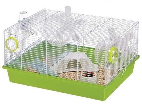 Klec pro křečky a myši s květinovým motivem.Rozměry: 50 x 35 x 25 cm. Rozměry klece s nainstalovanou výbavou: 54,6 x 37,7 x 26,2cm.Určena pro děti, které se učí pečovat o své malé miláčky a bavit se ve stejnou dobu.Husté dráty pro větší bezpečnost zvířat.Robustní plastové dno pro piliny a hobliny.Dveře s bezpečnostní pojistkou.Horní a dolní díl lze snadno oddělit při čištění.Dodávané příslušenství: 1 x miska na krmivo, 1 x zásobník na vodu, 1 x malý domek, 1 x patro a plastová rampa, 2 x cvičební kolotoč.