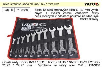 Klíče stranové sada 10 kusů 6-27mm CrV Yato